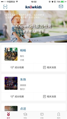 knowkids家长app是一款母婴育儿软件,knowkids家长为用户打造一个心理咨询育儿平台,通过心理教育,让父母可以了解孩子成长过程的心理变化,懂孩子,陪伴孩子健康成长,轻松育儿。