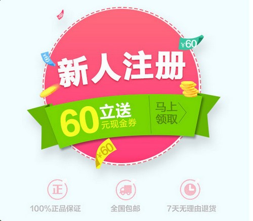 现在新用户注册贝贝特卖即可获赠60元现金卷,是可以直接抵现的哦!