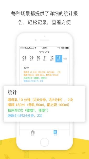 记录自动生成每日数据方便爸妈对宝宝的成长有更直观的了解。