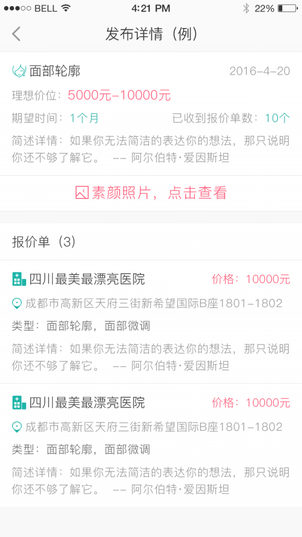 【女王般地挑选医院】 只需用美酱发布变美需求,就可以从多个韩国医疗美容机构收到私人定制的报价,让你不再苦于寻找医院,而是女王般的挑选整形医院。