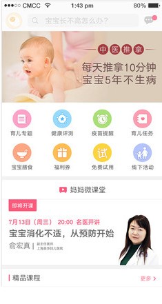 按宝宝月龄特点,主动推荐知名三甲医生,护理专家临床经验,指导您轻松应对育儿问题。症状,疾病等个性化问题,还可直接让大牌医生帮您判断,在家即可解决育儿问题。
