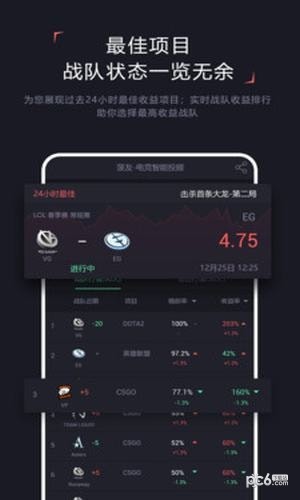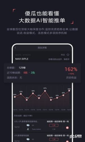 app是一款电竞智能投顾分析软件,app通过大数据及AI算法,展现现全球数千支电竞战队在赛场表现及投资收益情况,app为玩家提供精准的投注建议及策略,显著提升方案命中率。还提供全球每月千场电竞比赛赛程及赛果数据,是电竞比赛观赛娱乐的必备工具。