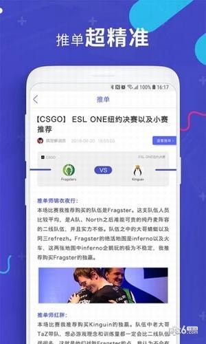 app是一款电竞赛事分析预测APP,app专为广大电竞游戏爱好者提供新闻资讯、玩家社区、比赛赛程、赛事数据、战绩查询、实时比分、专家预测、赛事分析等数据参考服务,app一站式满足玩家在手机上关于电竞的所有需求。