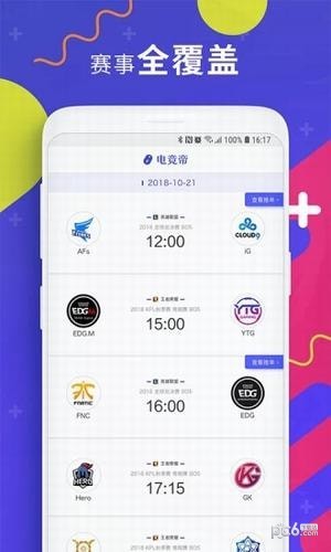 LOL、CS:GO、DOTA2、王者荣耀、绝地求生等各项主流电竞赛事的赛程表,可以随时随地查看和关注,不遗漏任何一场比赛。
