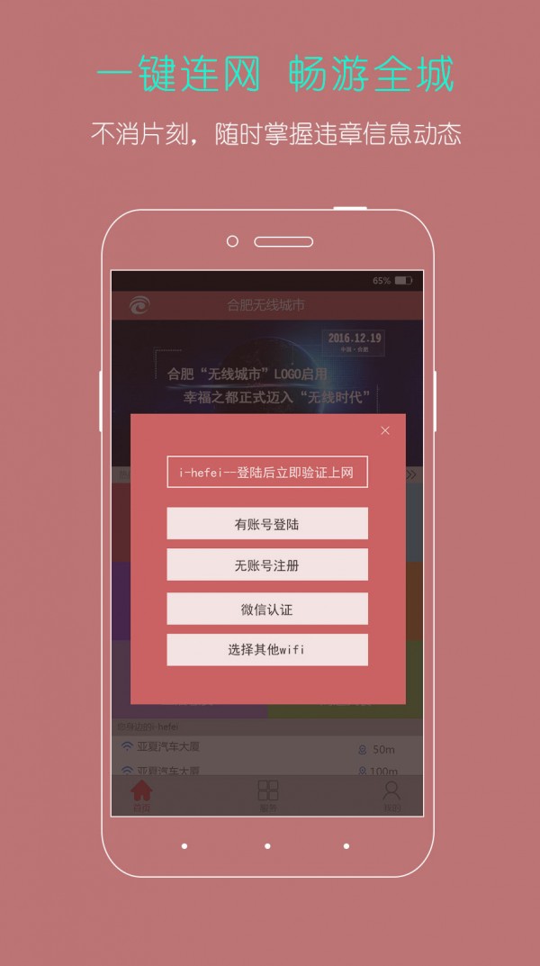 ihefei app是一款基于城际无线网络的连网软件,无需密码,就可以随时随地在线连接无线,还可以享受更多便捷服务。