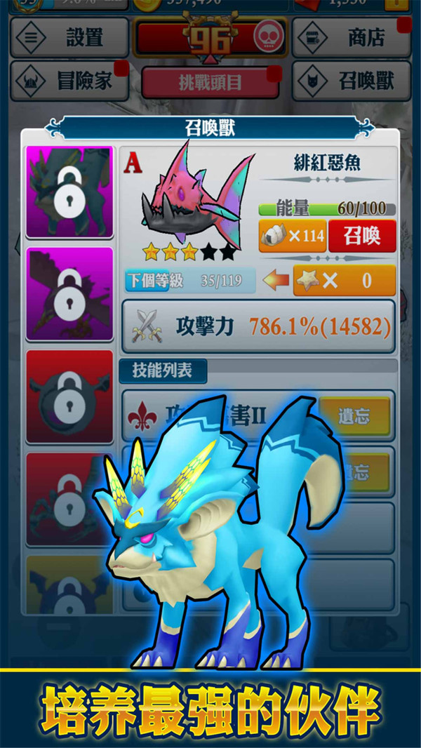 2、赚取硬币和装备,升级你的冒险家,不断挑战更高的塔,打败强大的敌人。