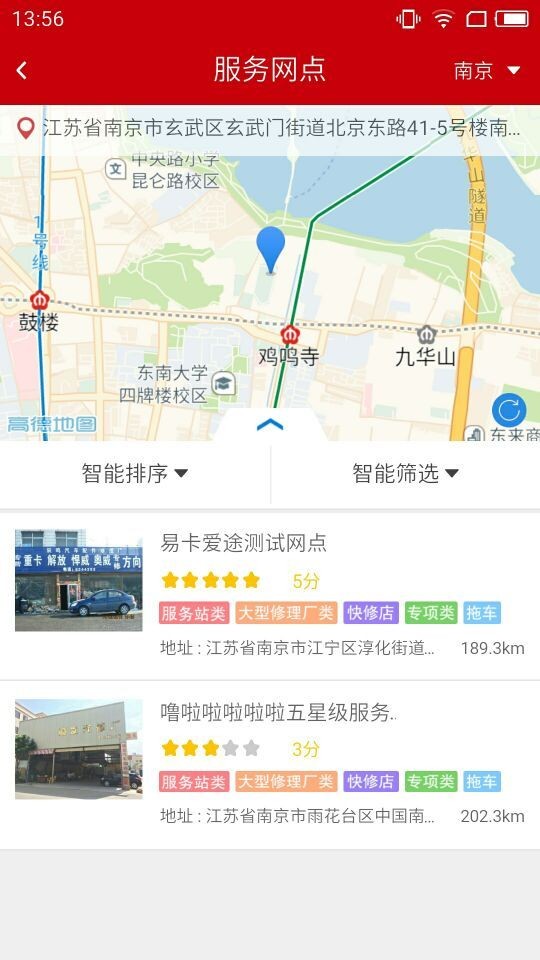 卡车遇到故障时,通过平台将展现当前附近的所有网点,司机可根据需求自由选择网点进行维修。