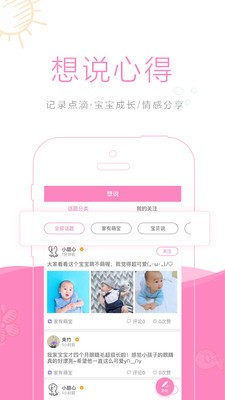 朋友圈太杂乱?在这里,你可以与社区好友一起疯狂晒娃,随心所欲的发布一切生活动态,还有丰富话题供大家一起互动讨论,共同交流孕育生活,和志趣相投的妈妈成为好友,共同见证宝宝们健康快乐的成长!
