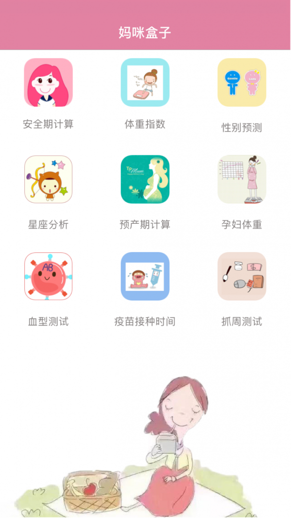 2、一起迎接小宝贝:呀,忘记医生说的预产期了怎么办,没关系,【妈咪盒子】预测预产期!怀孕孕期时长40周,【妈咪盒子】为您贴心奉上每周注意事项和宝宝变化,孕育管家和您一起迎接宝贝出生。