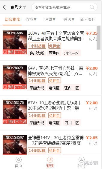 平台专业的游戏租赁平台,支持多款顶端游戏账号租赁。