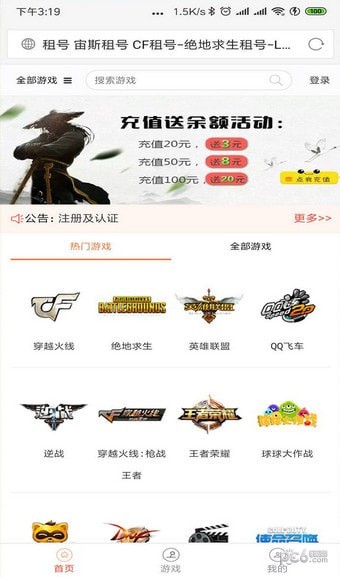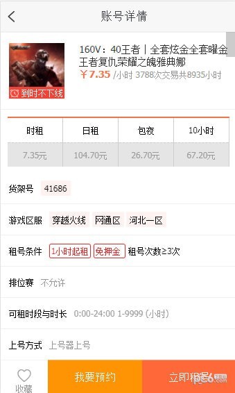 你可以在平台租借到lol、守望先锋、qq飞车、逆战、CS-online、跑跑、CF、王者荣耀、天天酷跑、球球大作战、YY、H1Z1大逃杀的账号,