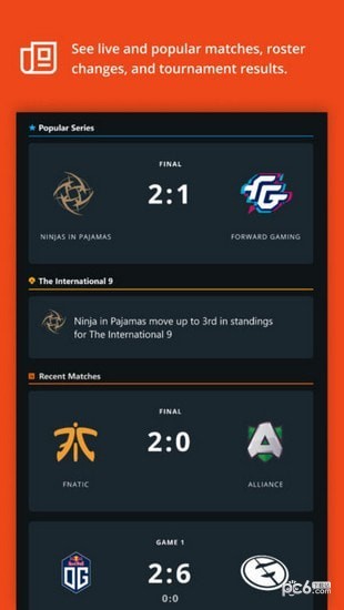 1、定制新闻推送:收藏最喜爱的战队和选手,使其相关资讯在新闻推送中突出显示。实时获得比赛结果、阵容变化和赛程信息。你还可以查看选手资料,了解更多战队历史的深度信息,还有当前职业巡回赛赛季的队伍成绩和收获。
