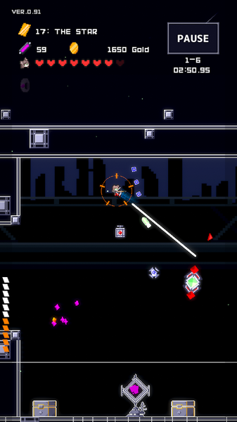 1、极简主义高清风像素游戏风格,滑翔射击突破玩法,考验玩家的游戏操作和反应能力;