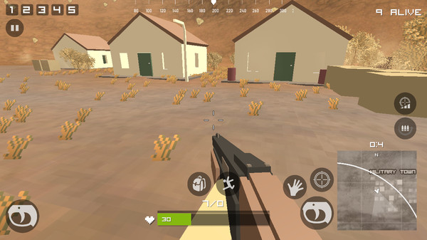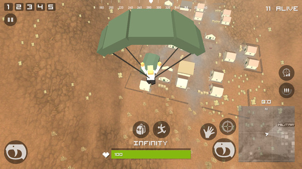 各种散乱武器供你选择,收集自己喜欢的武器,帮你轻松吃鸡,大型地图设计让射击战斗更加精彩,在地图上寻找敌人并杀死它们,像素方形风格的人物角色增添了游戏的乐趣。