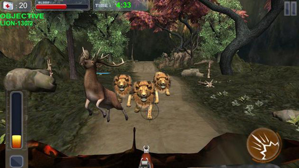 猎狮者森林大逃亡是一款好玩的狩猎类射击游戏,游戏中玩家作为一名猎手需要在一定的时间内狩猎到足够的猎物,而这猎物正是凶猛的狮子,你是否能够在这危险密布的丛林之中完成自己的狩猎目标呢?