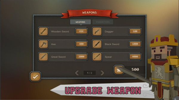 2、富有挑战性的骑士游戏,解锁盔甲和圣剑武器。