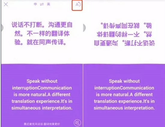 只需点开,上滑进入同声传译页面,还有可旋转对话屏幕的小彩蛋,真正实现面对面沟通。