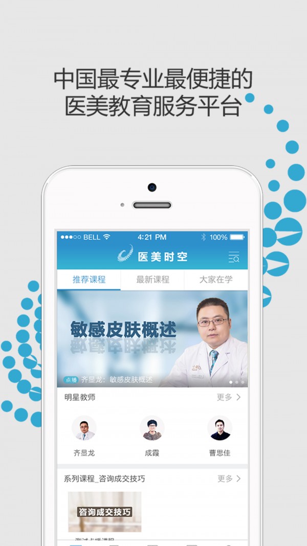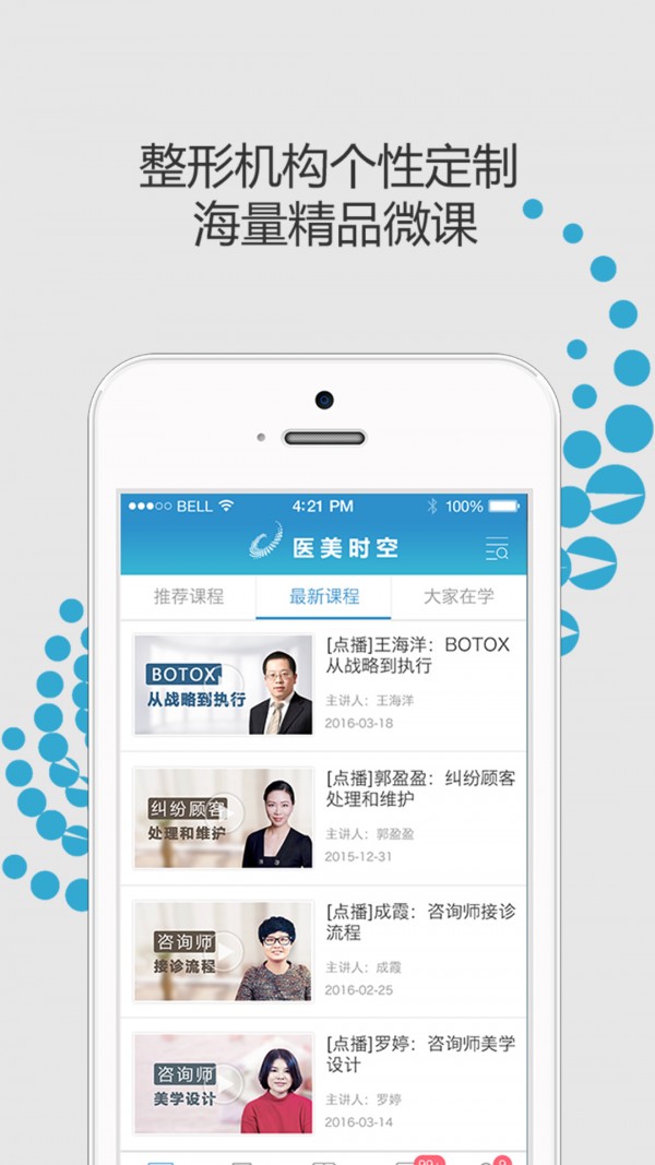 在这里聚集了近百名医美行业专家,通过“医美时空”,您不仅可以随时随地学习医美行业各领域专业课程,课程涵盖了整形外科,皮肤与激光,注射与微整、咨询与服务、营销与运营、领导与管理等六大专业领域,还可以个性化定制移动学习解决方案。