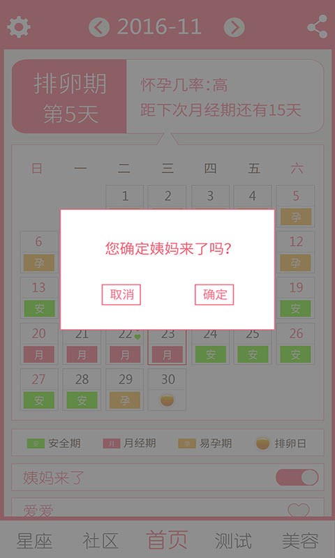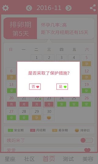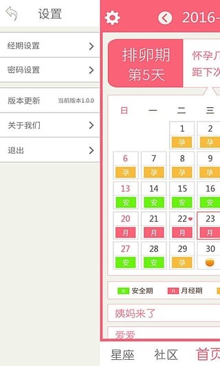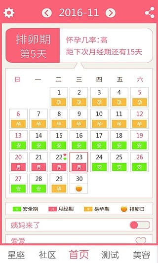 排卵期安全期日历app是一款为女性朋友和有女朋友的男朋友准备的软件,通过排卵期安全期日历app你可以方便的了解女性朋友的生理周期。