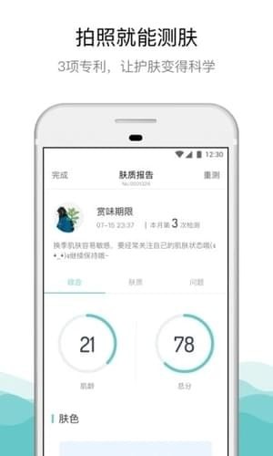 app是一款教大家护肤小知识的软件,小白用户用app拍照就能测试自己的肌肤状态,app帮你智能分析皮肤,然后根据你的皮肤情况推荐护肤用品,喜欢的朋友快来下载app使用吧。