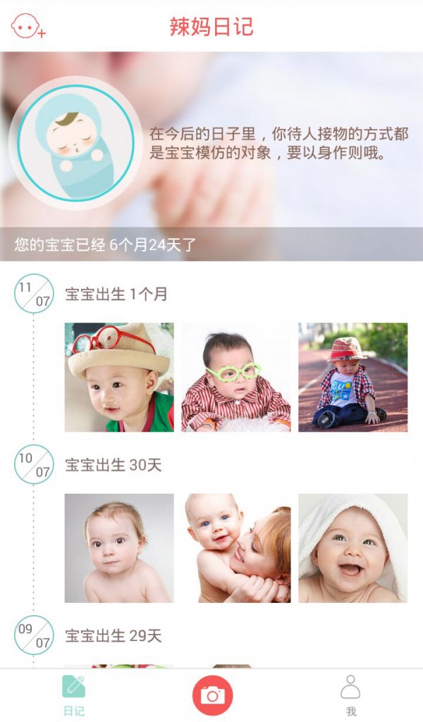 辣妈日记是一款手机宝宝成长记录软件,把宝宝的成长点滴用辣妈日记来珍藏记忆,通过妈妈圈来和家人分享宝宝的成长喜悦和快乐,让宝宝健康快乐成长。