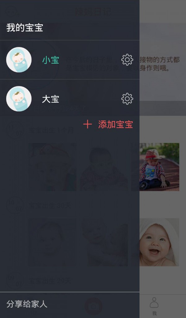 - 亲友分享:亲友无需在下载APP,通过辣妈日记微信公众即可实时查看宝宝的最新动态。