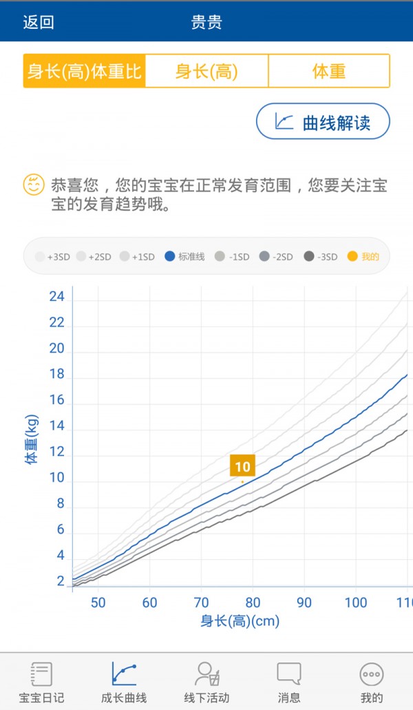 子母成长曲线提供直观表现宝宝发育状况的三条成长曲线的连续监测,分别是身长(高)/年龄、体重/年龄、体重/身长(高)三条成长曲线。