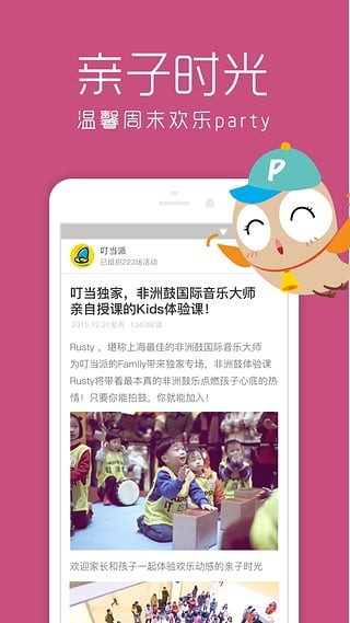 积分福利:大家通过签到、发言等方式攒够一定数量积分,能够兑换海量品质亲子活动哦!同时,我们会为 VIP会员定制独一无二的family day。还有更多定期优惠福利,限量爆款活动等着你!加入,体验叮当新生活。