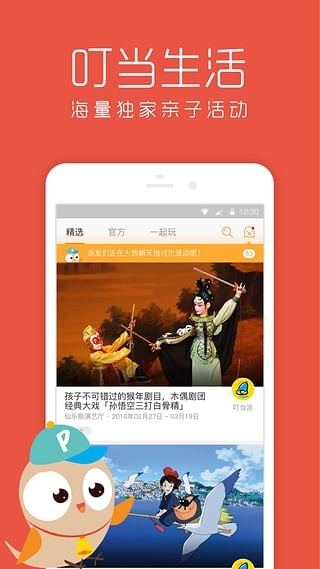 品质活动:为大家寻找、筛选众多高品质独家活动,让孩子释放天性,家人共度温馨亲子时光。艺术展览、儿童剧院、自然博物馆、橄榄球、沙画、非洲鼓、暴走徒步、亲子跑团、牙医、烘焙等,总有一类活动能让你和孩子乐享周末。