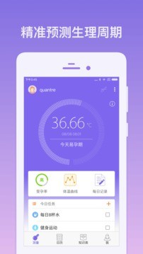 【智能预测周期】通过采集基础体温、月经周期、每日记录,应用大数据分析和机器学习算法,可以精确预测你的排卵周期。日历形式直观易懂,每日记录简洁方便。