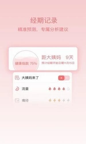 app精准预测,科学记录每一次生理期,越用分析越准确。科学备孕,提供月经期保健、育儿、产后恢复、生活保健等各类专业全面的知识,帮你解决经期、怀孕、备孕、育儿不同阶段的困扰。科学呵护女性成长每一天。