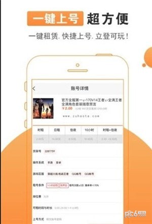 app是款非常便捷的游戏账号租赁的软件平台,用户可在上放心租号,任意游戏都有,安全又可靠,并且账号质量特别高,为你的游戏辅助保驾护航,快来下载app吧,绝对超值哦~