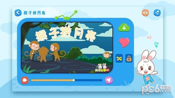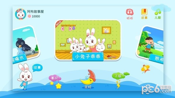 app还提供热门儿歌、钢琴胎教音乐、经典唐诗、儿童英语、绘本故事,原来兔兔儿歌的动画内容在阿布故事也能使用。让宝宝有个快乐的童年,是我们共同的目标!