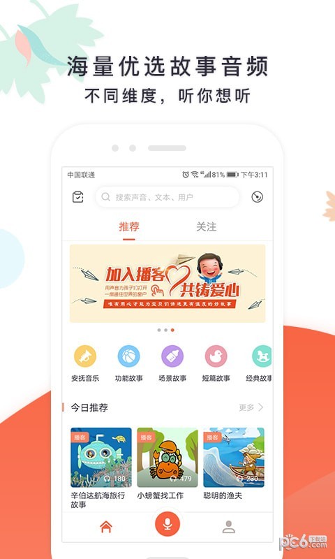 2、精品选送:汇集了大量的电台主播,人工优选优质有声儿童故事,父母有更多的选择性,为孩子挑选出更加适合自己宝宝的童话故事,绘本故事;
