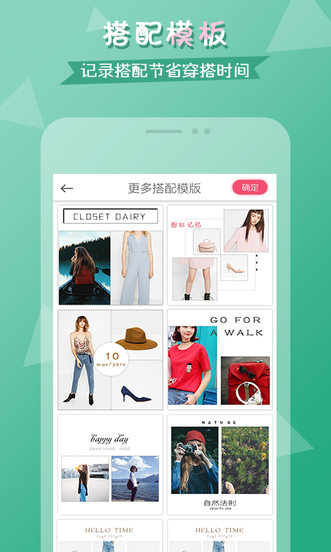 -更有海量个性模板记录搭配方案,节省你每天搭配衣服的时间;
