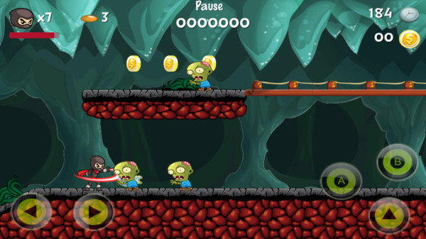 2、这个忍者好像有点不太一样,出了跳跃还会杀僵尸呢!