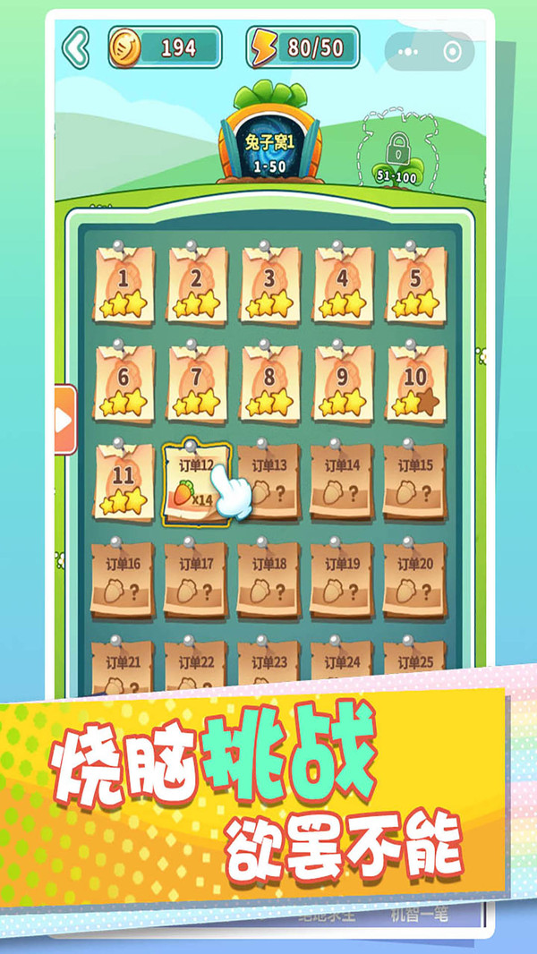 消灭萝卜是一款有趣的休闲类手游,这次你需要做的就是把所有的萝卜都给收集起来,兔子将会跟随着你的手指滑动方向移动,前去收获萝卜,还等什么,感兴趣的话就快来下载体验吧!
