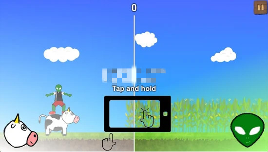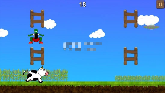 1、点击屏幕跳跃躲避障碍物,奶牛和外星人需要分开控制