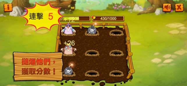 2、问题在于与地鼠一起出现的还有炸弹,一不小心就会瞬间爆炸。
