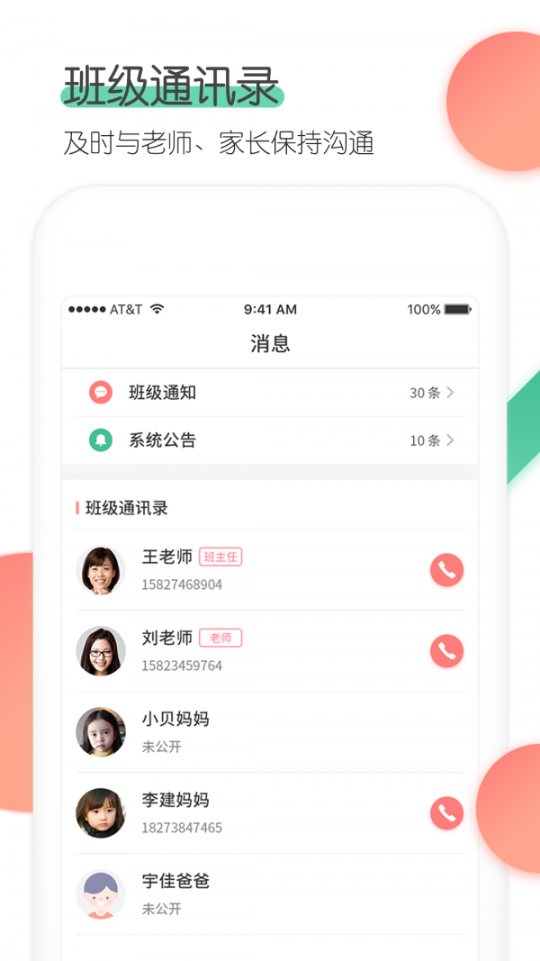 2、【班级通讯录】快捷查看班级老师和家长的联系方式