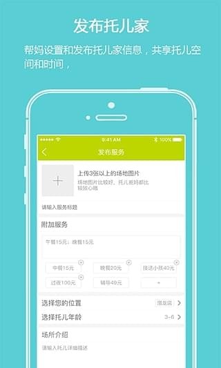 发布托儿家:帮妈设置和发布托儿家信息,共享托儿空间和时间