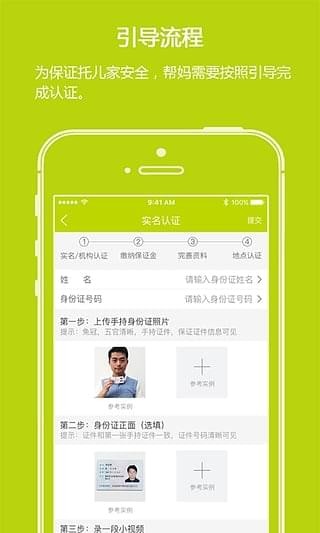 引导流程:为保证托儿家安全,帮妈需要按照引导完成认证