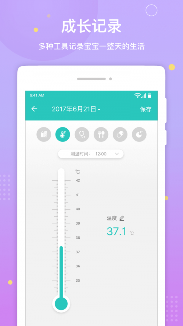 如果发现宝宝发烧,系统会根据发烧状况自动给出看护指南,缓解新手妈妈的慌乱。