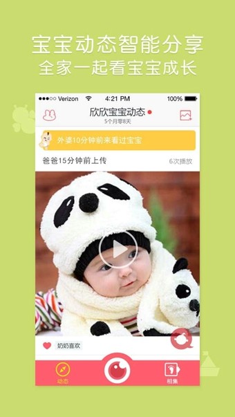 随手录制宝宝成长点滴,自动即时分享,进入视频育儿新时代;