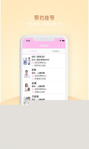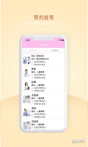 6、保健咨询,app为家长提供预约功能,根据儿童不同的情况预约不同的专家医生;