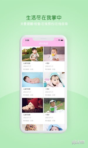 5、成长轨迹,app为家长提供上传儿童照片功能,留住儿童成长的美好瞬间;
