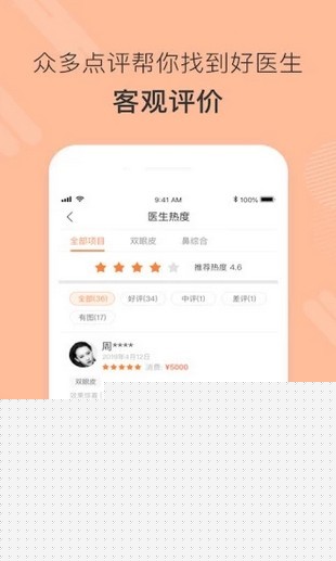 app是一款值得大家信赖的诚信医美整形平台。app上的每一位整形医生都是经过国家认证的,而且每个医生都有不同的擅长科目。大家可以放心的来app进行体验!