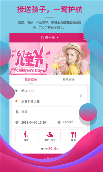 app,基于孩子安全接送服务打造的共享服务平台。app这是个共享妈妈服务平台,旨在给孩子蛮带来上学及放学接送+看护+用餐的妈妈服务。