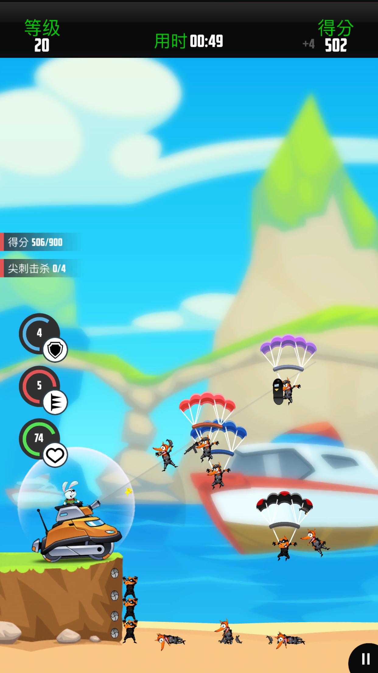 1、轻松愉快的射击体验,战争局势十分紧张,不容丝毫的松懈,对狐狸们发起猛烈的进攻吧!