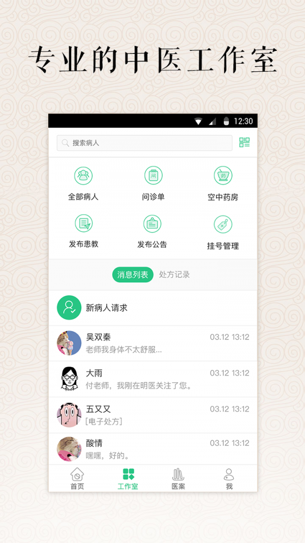 6、 独具特色的医案,医生随时随地记录并查看,永不丢失;